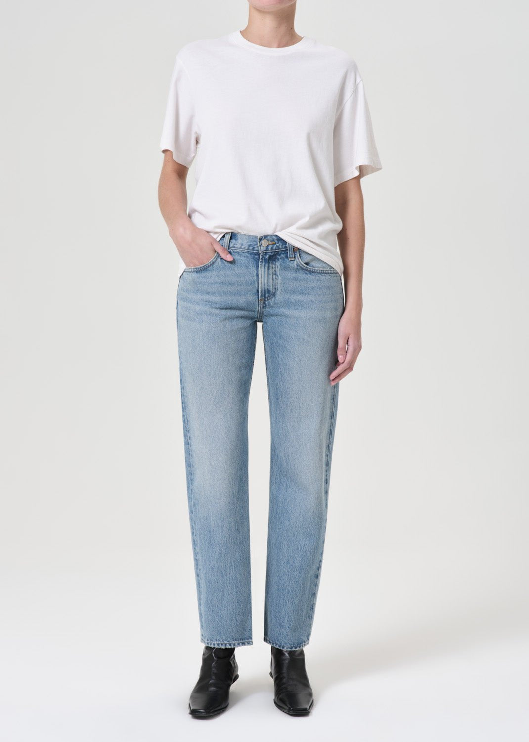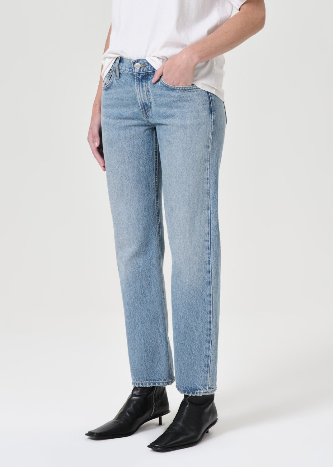A Y2K update to the classic five-pocket fit. Featuring a low-rise waist with classic straight leg. The Amber creates an easy and flattering silhouette for basics and beyond.