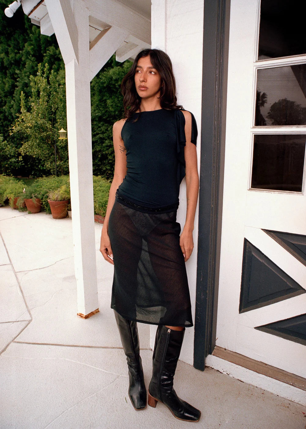 The Bateau- an asymmetric sleeveless top featuring draped details