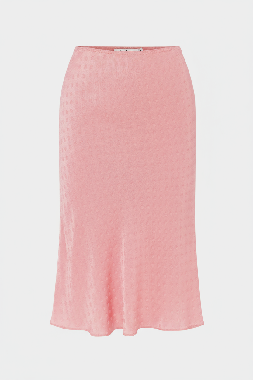 Bias-cut skirt in jacquard handloom, featuring a knee-length hemline and an elastic waistband with zig-zag stitching. Made from a blend of viscose and Lenzing™ Ecovero™ for a fluid drape and subtle texture.