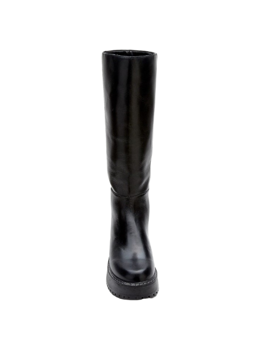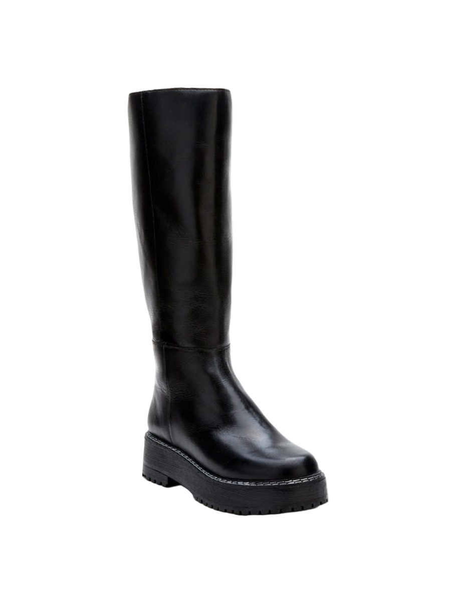 Chunky, utilitarian style knee high boot. We love this with any mini or maxi.