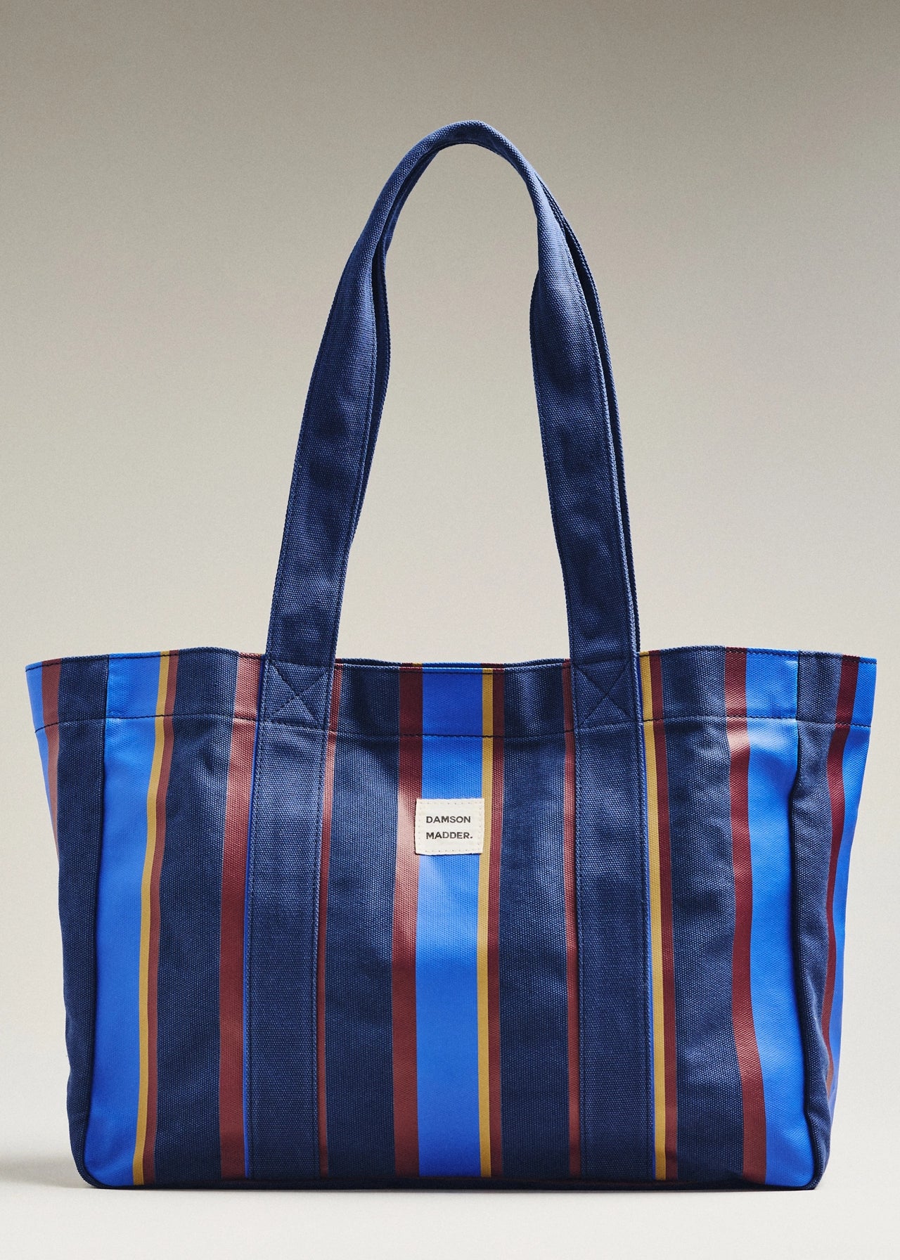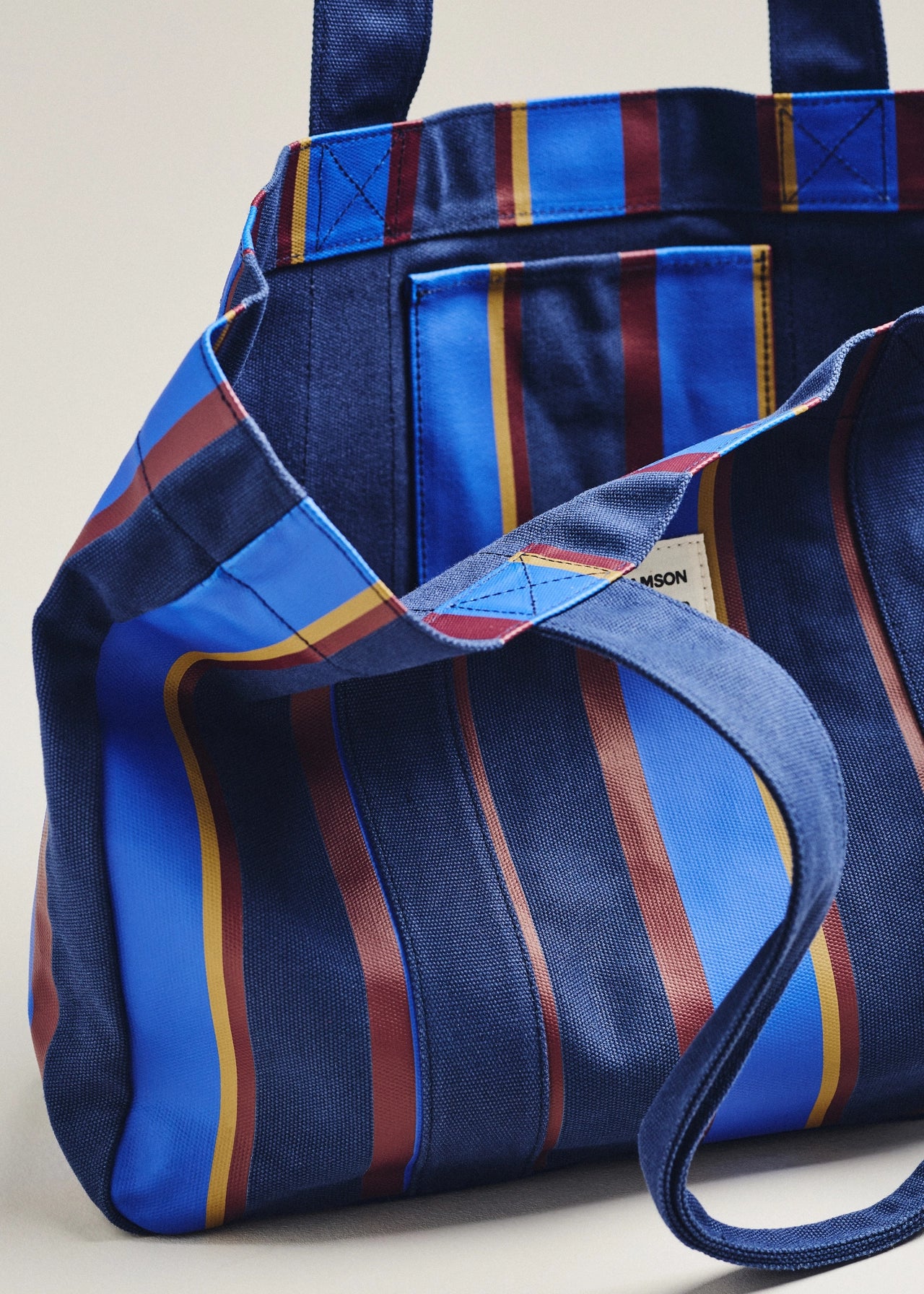 Organic Cotton Striped Tote Bag- Blue/Chocolate stripe