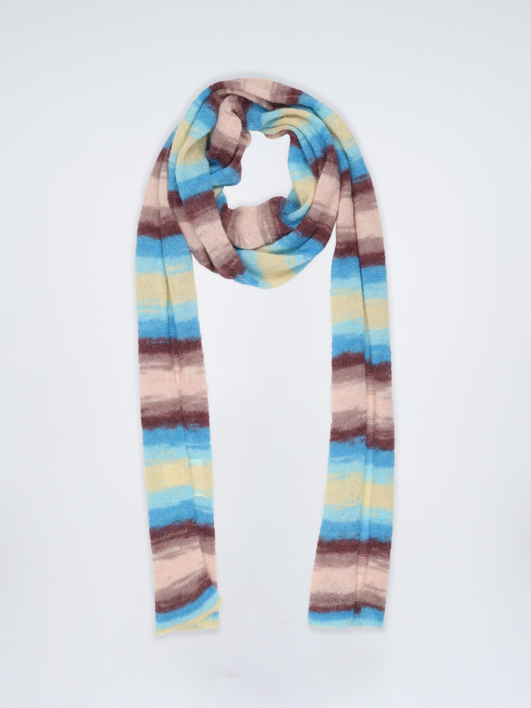 The perfect finish to any look. The Willow scarf is featured in a thin knit style with a fun color block stripe. Its vintage appeal makes this a forever staple piece.