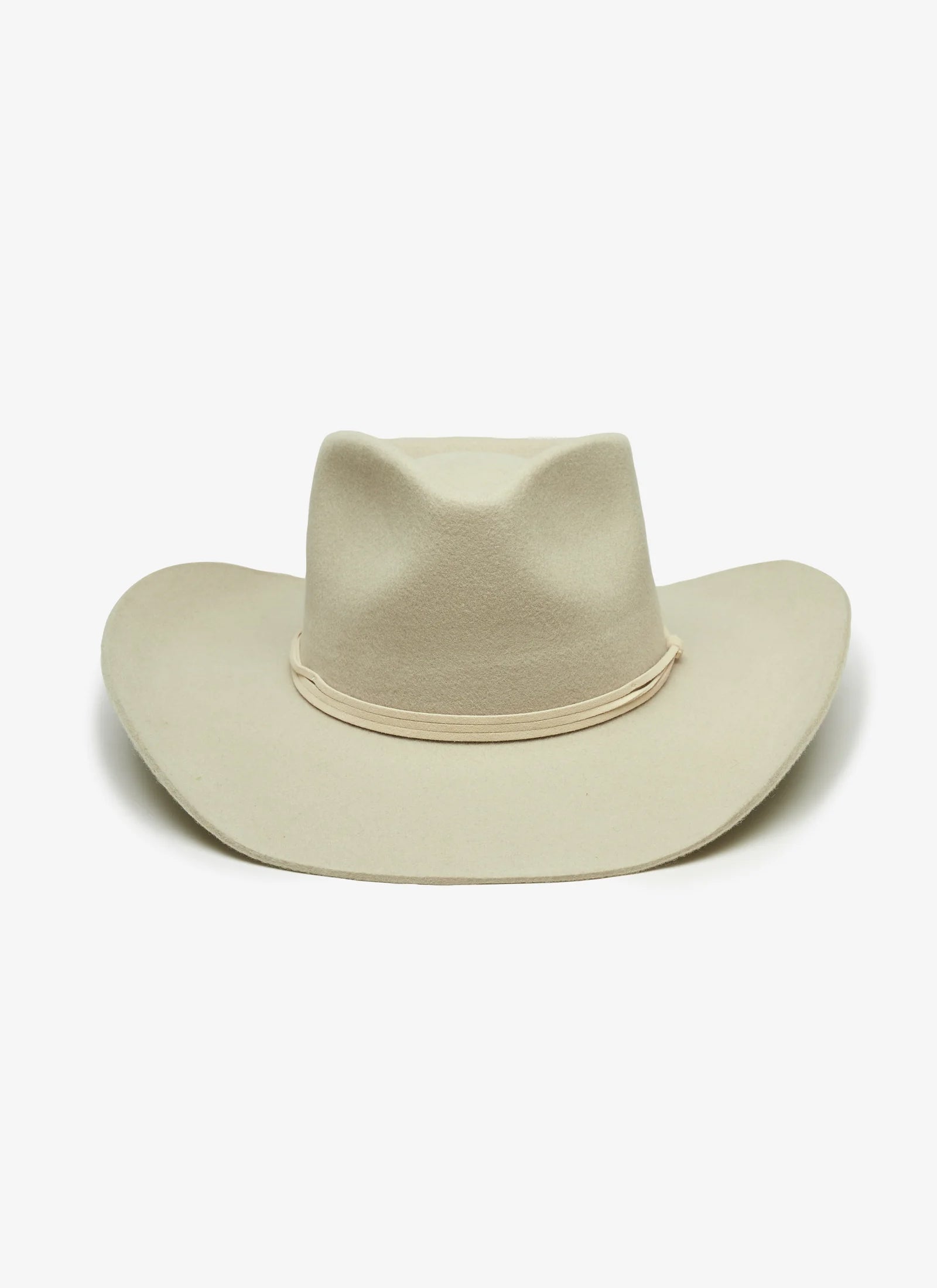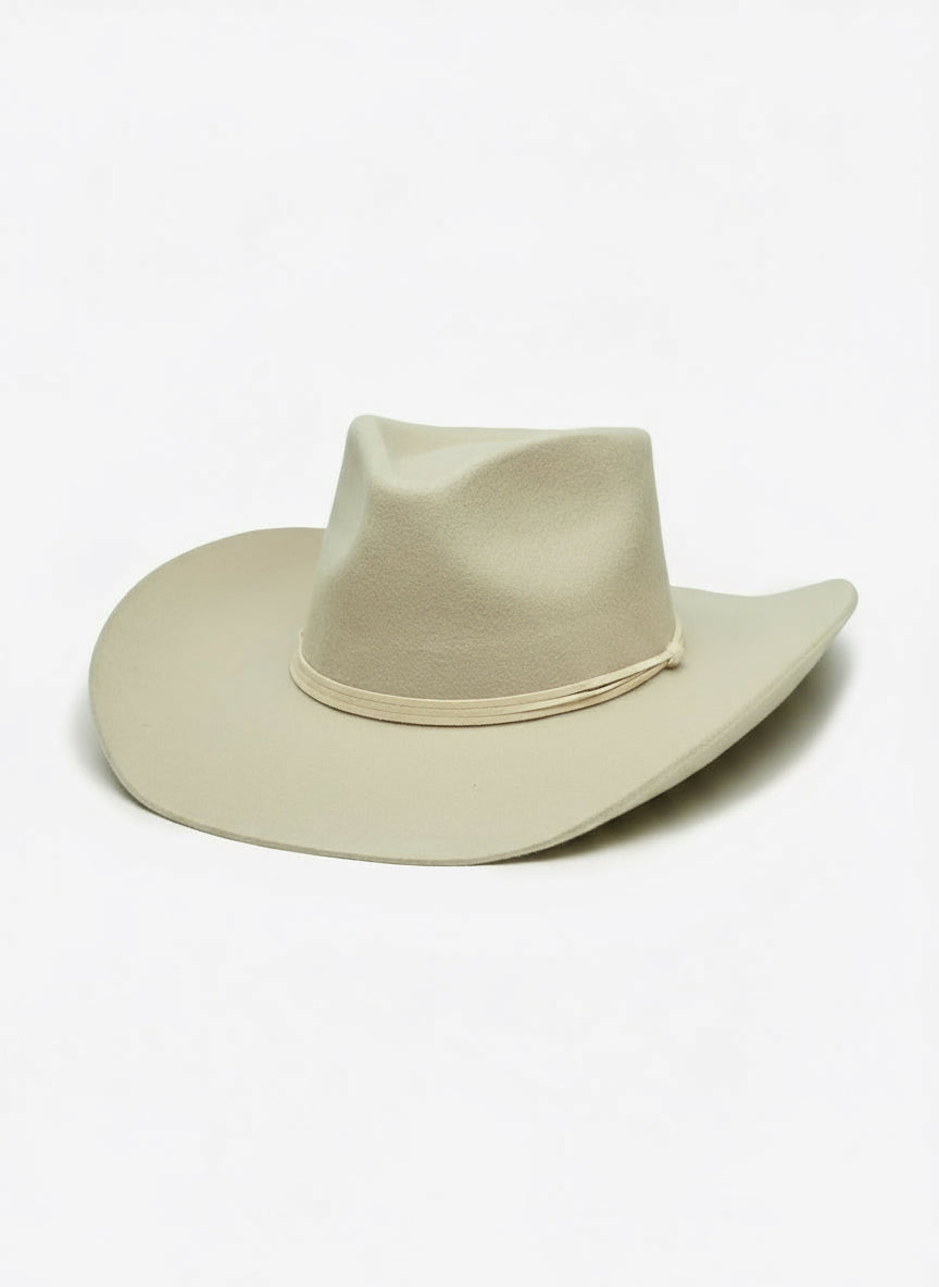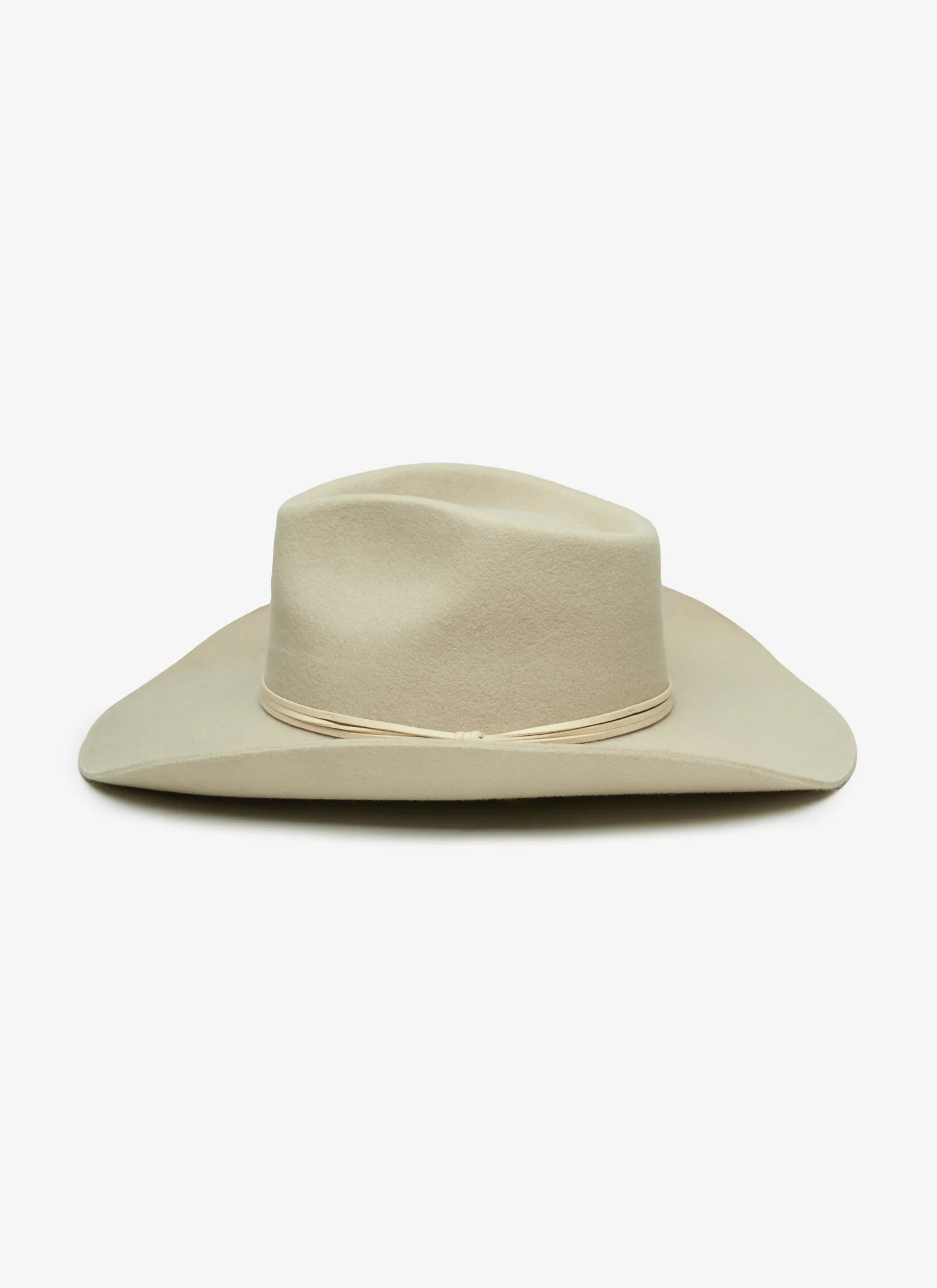 A classic cowboy style made with 100% Australian wool felt and features a stiff cut brim, pinched crown, and genuine suede rope trim. The perfect staple cowboy hat for your collection.