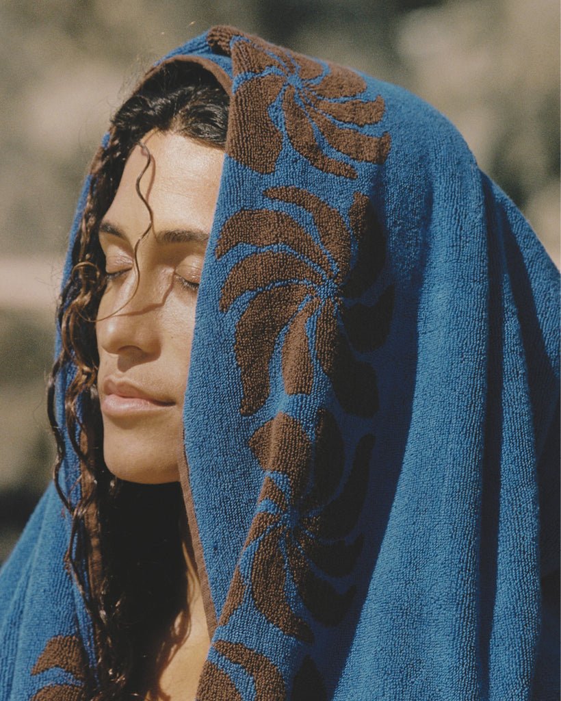 A reminder of Puerto Escondido- known for its rugged and powerful coastline, adjacent to tree lined beaches filled with cabanas and sunlit beach bars. The pristine ocean is hypnotic in its beauty and power, which provides a constant reminder of our place within nature. The perfect towel to sit on to take in the elements.
