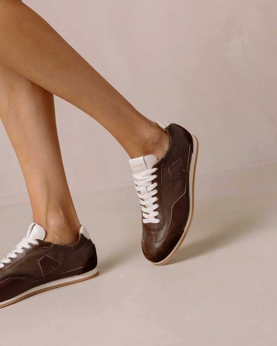 An ode to 70s sportswear, the TB.70 sneakers in brown leather boast a super lightweight construction. The soft uppers feature suede panels, curved line tonal stitching and, last but not least, our signature A-shaped patch for instant recognition. The elasticated cuff is designed to ensure a comfortable fit, as well as endless styling potential: from sweet dresses to gym leggings, the sky's the limit.