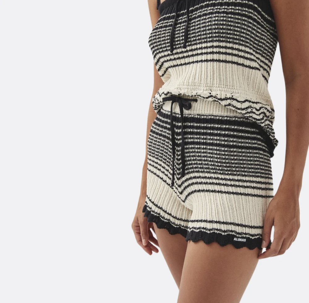 Woven in a crochet-knit, the Paz tricot shorts have a lightweight construction with black and white stripes. Pair this style over swim or as a set, paired with the matching Maia top.