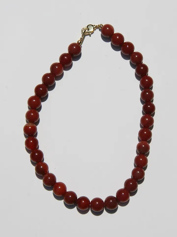Cherry Carnelian Beaded Necklace with Gold Clasp