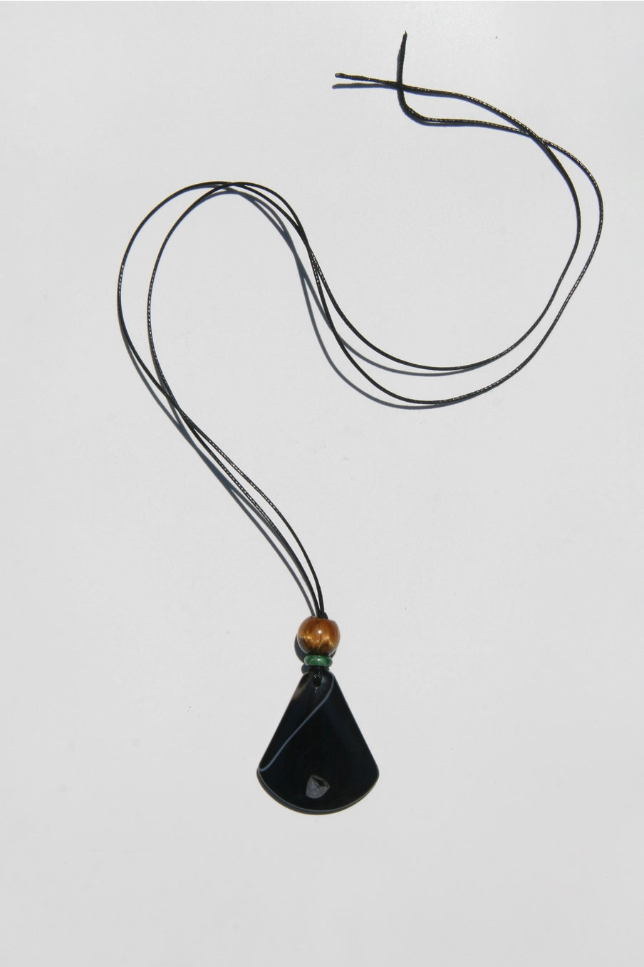 Elegant long pendant necklace featuring gemstones in complimentary colors and shapes, creating a refined and balanced design.