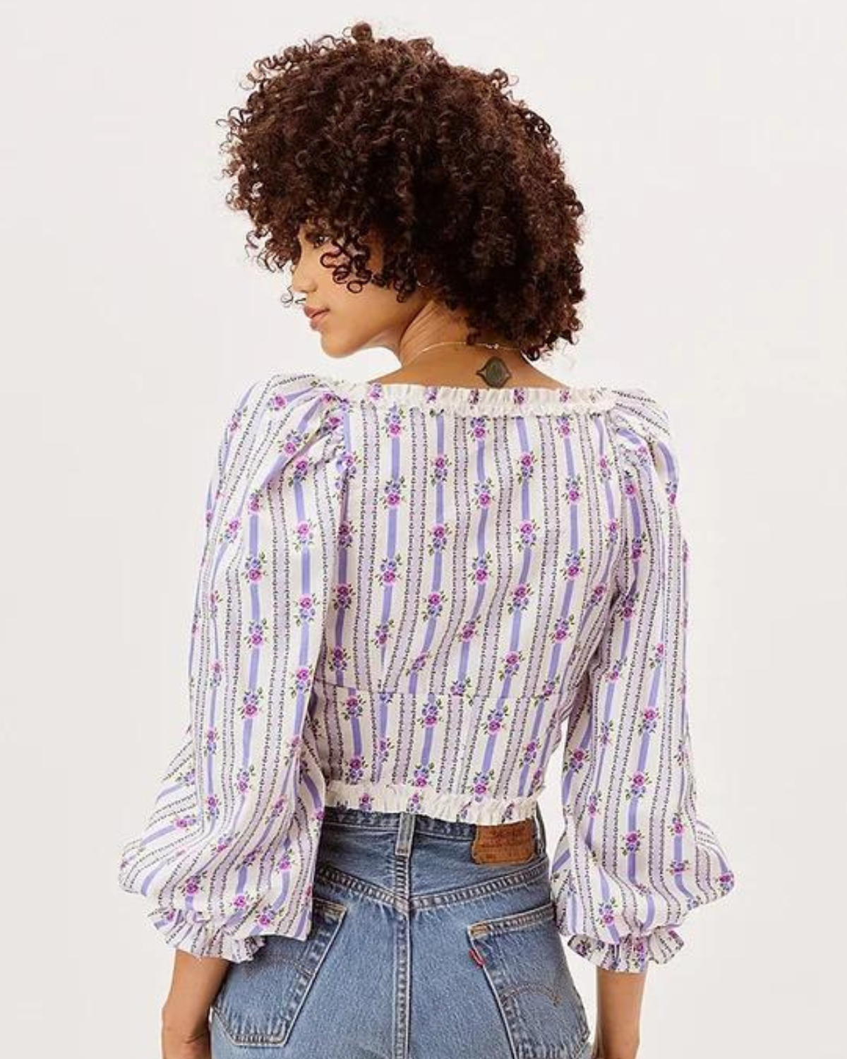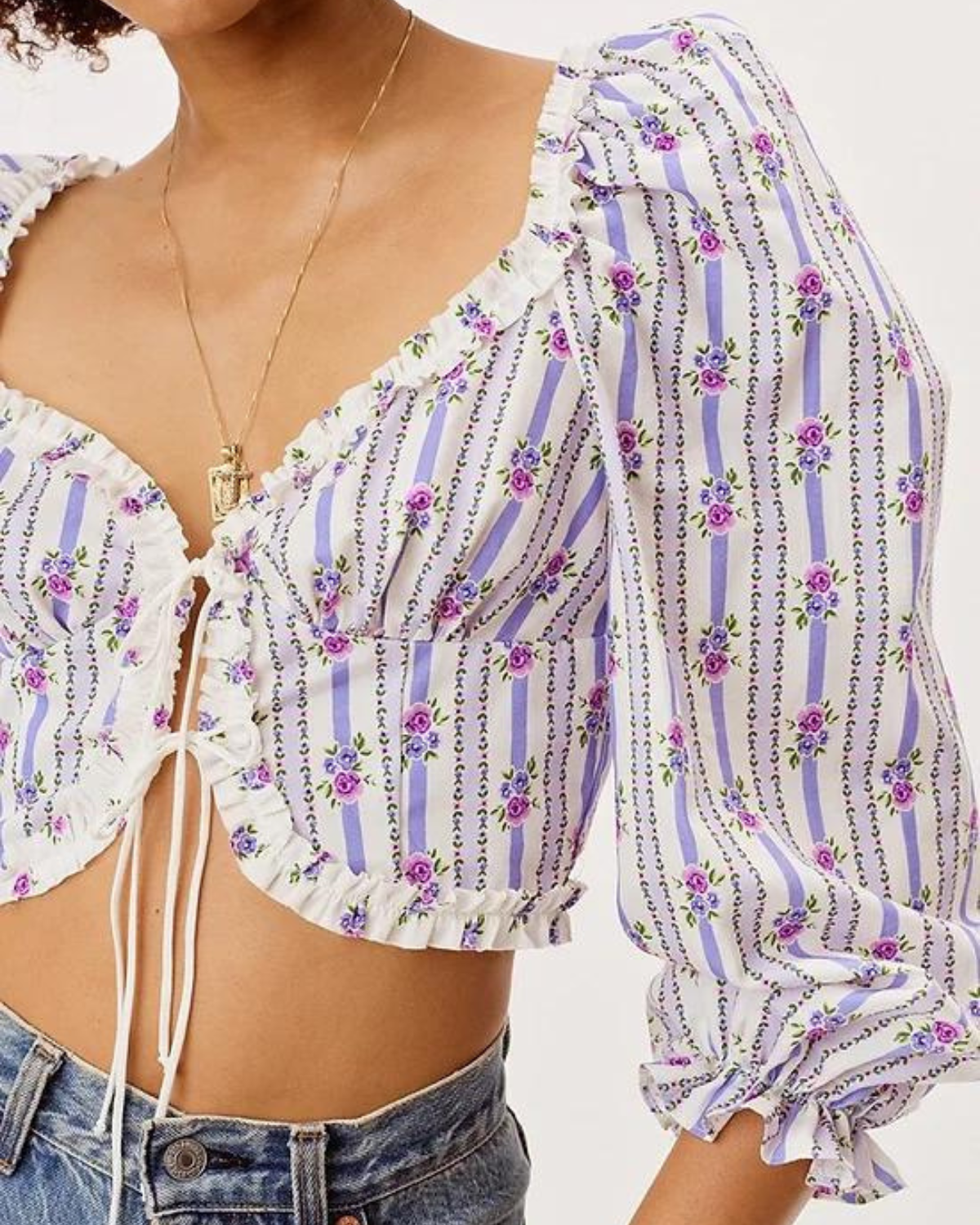 This flirty striped floral print crop top is a top pick for a fun night out. This fabric is made from leftover fallen rose petals and has a natural floral rose scent.