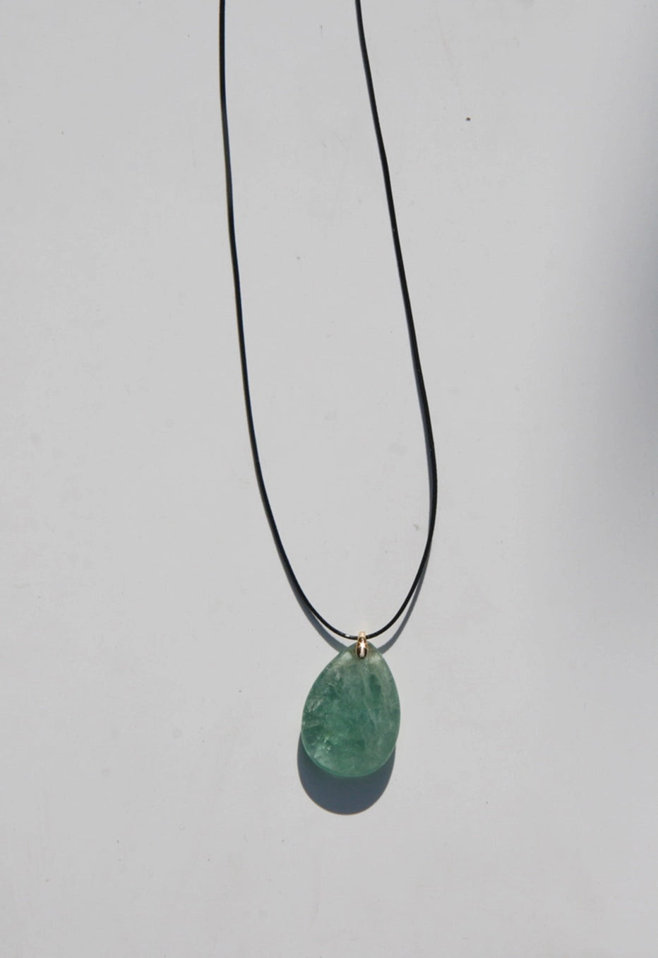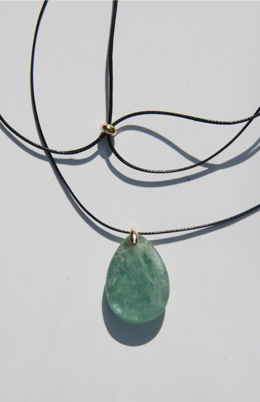 Elevate any ensemble with this opulent long pendant necklace, adorned with an oversized Green Aventurine gemstone in the shape of a teardrop.
