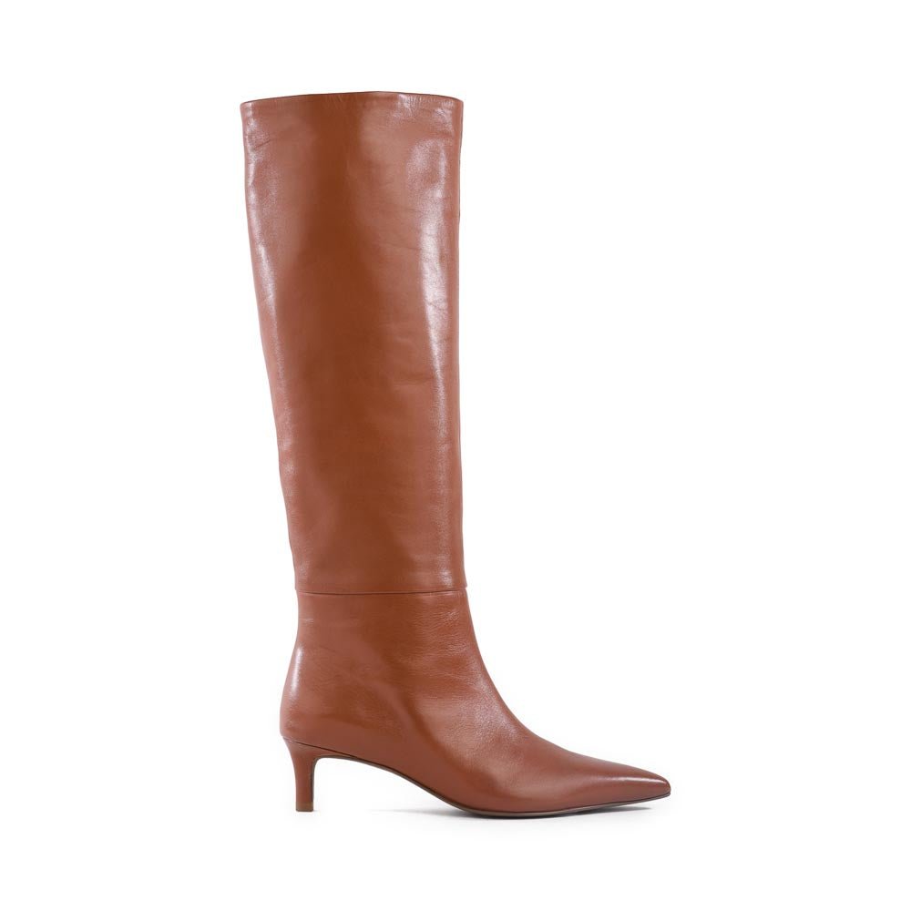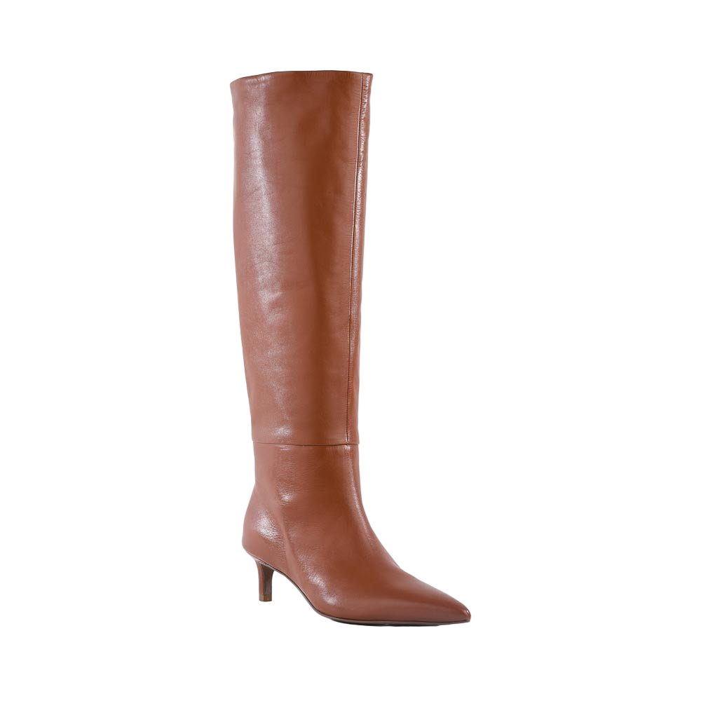 A sleek pointed toe and modern kitten heel mark the defining characteristics of these elegant knee high tall boots. Detailed in luxurious smooth grain leather, with a sleek pointed toe and modern kitten heel mark the defining characteristics of these elegant knee high tall boots.
