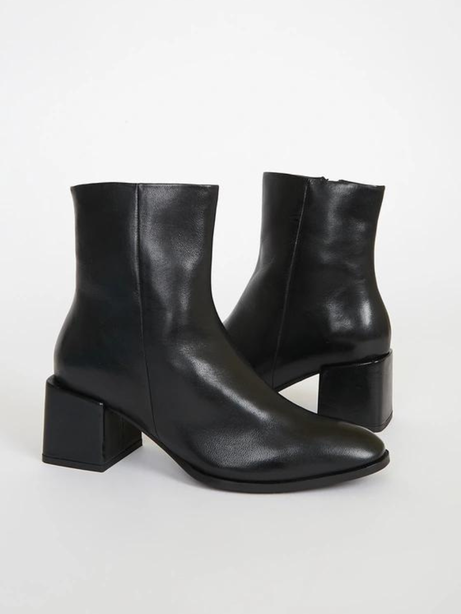 Sleek and minimal, these high ankle booties have an emphasized square-shaped, lipped heel that sets them apart. Super soft sheep leather and all-over monochrome detailing lend a dressier feel, making these the perfect choice for holiday parties, important business meetings, or any time you want to add some edge to your look.